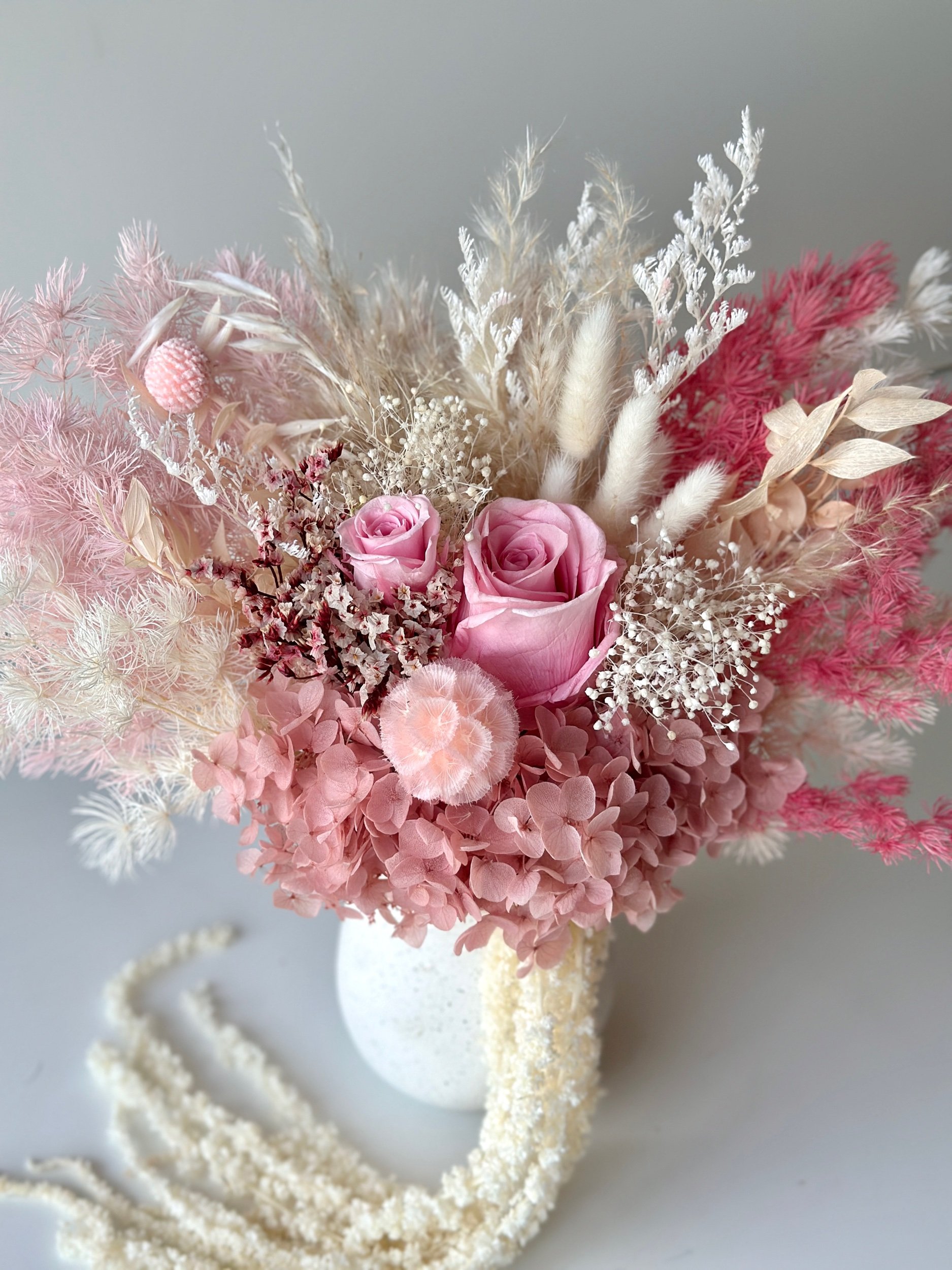 Disclaimer - We use natural real dried and preserved flowers, which means no two arrangements we create will be exactly the same. Every flower stem will have its own unique form so there may be slight differences in each arrangement.